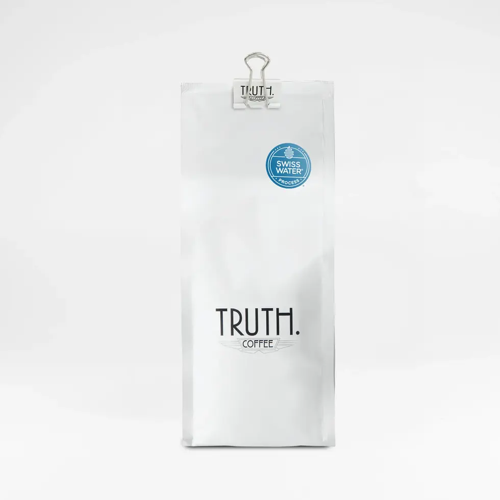 This premium Truth Coffee Colombian single origin is decaffeinated using the Swiss Water Process, a chemical free method chosen to preserve flavor integrity and origin character. Sourced from Colombia and processed with care, this decaf reflects Truth Coffee’s commitment to quality without compromise, even when the process is more demanding and costly.